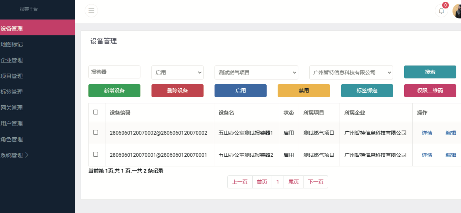 报警设备远程管理器具有广泛兼容能力,可对接不同厂家的可燃气体泄漏报警主机,获取主机的工作状态、报警情况等,并将信息实时发送到云平台。在设备进行报警时,通过系统及时向相关账号推送实时报警信息,并可通过远程控制关闭联动设备。
